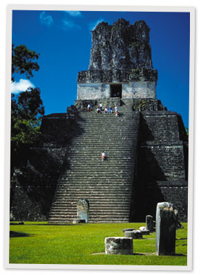 With Continental Airlines new twice-weekly non-stop service from Houston to Flores, the airport which serves Tikal, and Mayatour‘s “Tikal Getaway,” you will travel back in time more than a thousand years to the most spectacular city-complex of Mayan culture, the immense, ancient city of Tikal, Guatemala. The land portion of this extraordinary journey includes airport transfers, four nights accommodations, daily breakfasts and lunches, and three days of touring with expert guides.